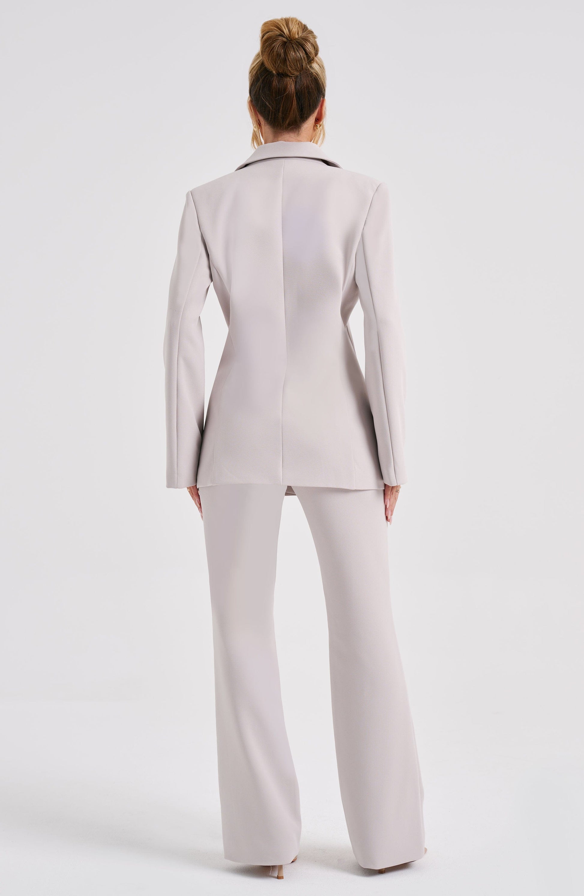 Zeg gedag tegen zachte meisjeskleding in het Hazel-kostuumjasje, een verbluffend op maat gemaakt ontwerp met dubbele revers en chique wikkelriem. Style haar met de bijpassende Hazel-broek, doorzichtige hakken en een hoge, strakke knot.