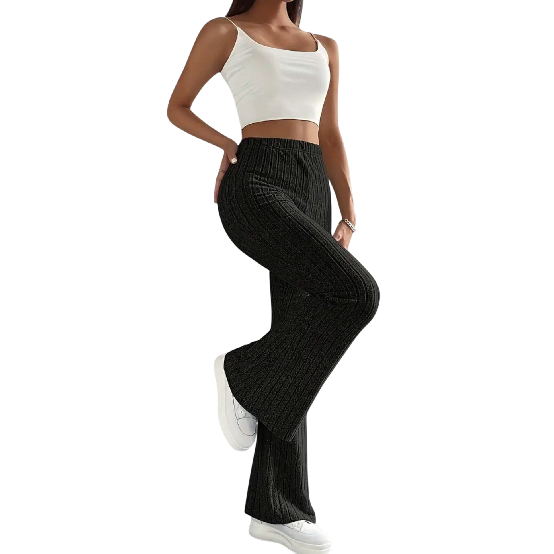 Luretta unisce il comfort moderno a linee femminili – il taglio svasato allunga otticamente la gamba, mentre la struttura discreta conferisce profondità al look. La vita elastica assicura una vestibilità piacevole, sia durante una passeggiata in città, in smart working o rilassati sul divano.